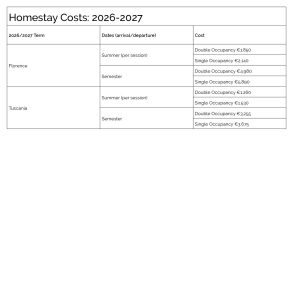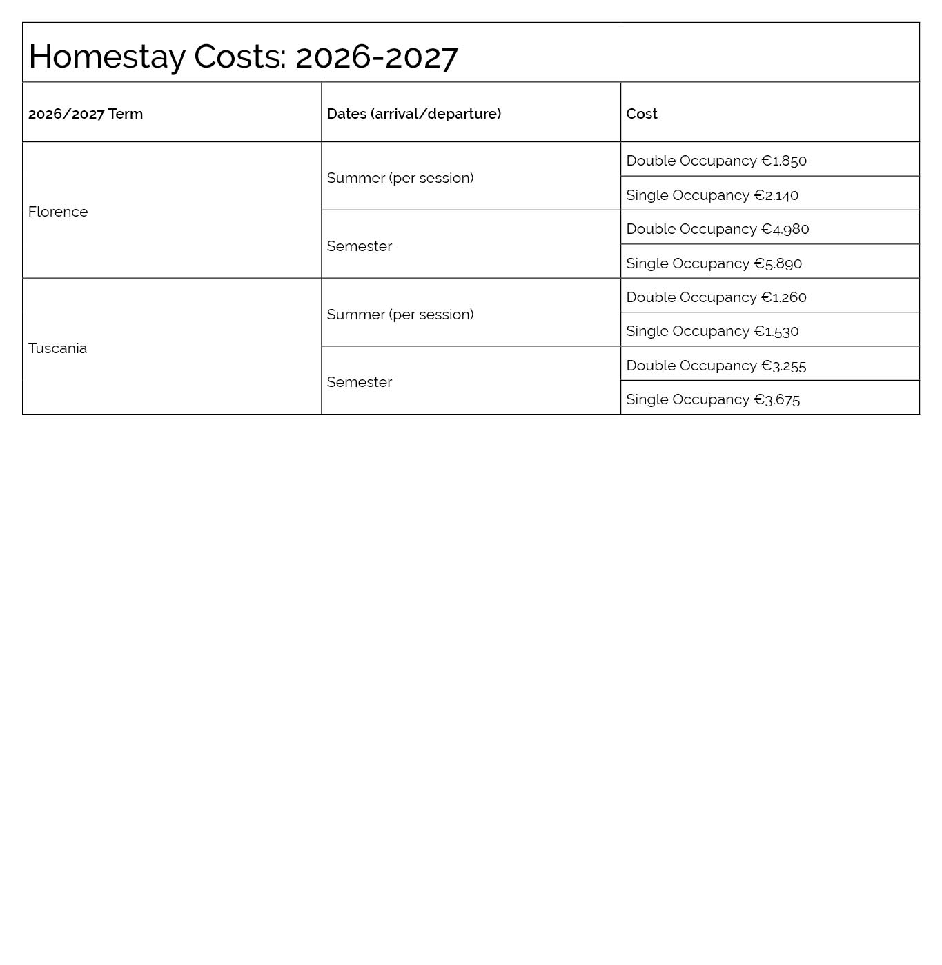 • Upon arrival in Italy, the student will not be allowed to cancel the homestay option and