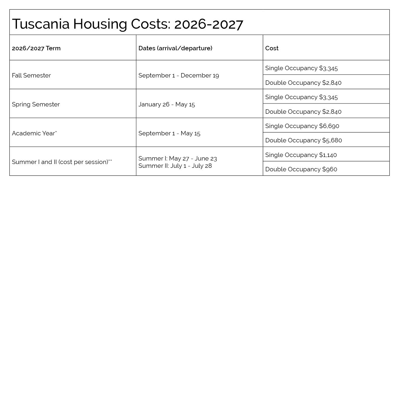 For more information regarding housing costs, please contact [email protected].