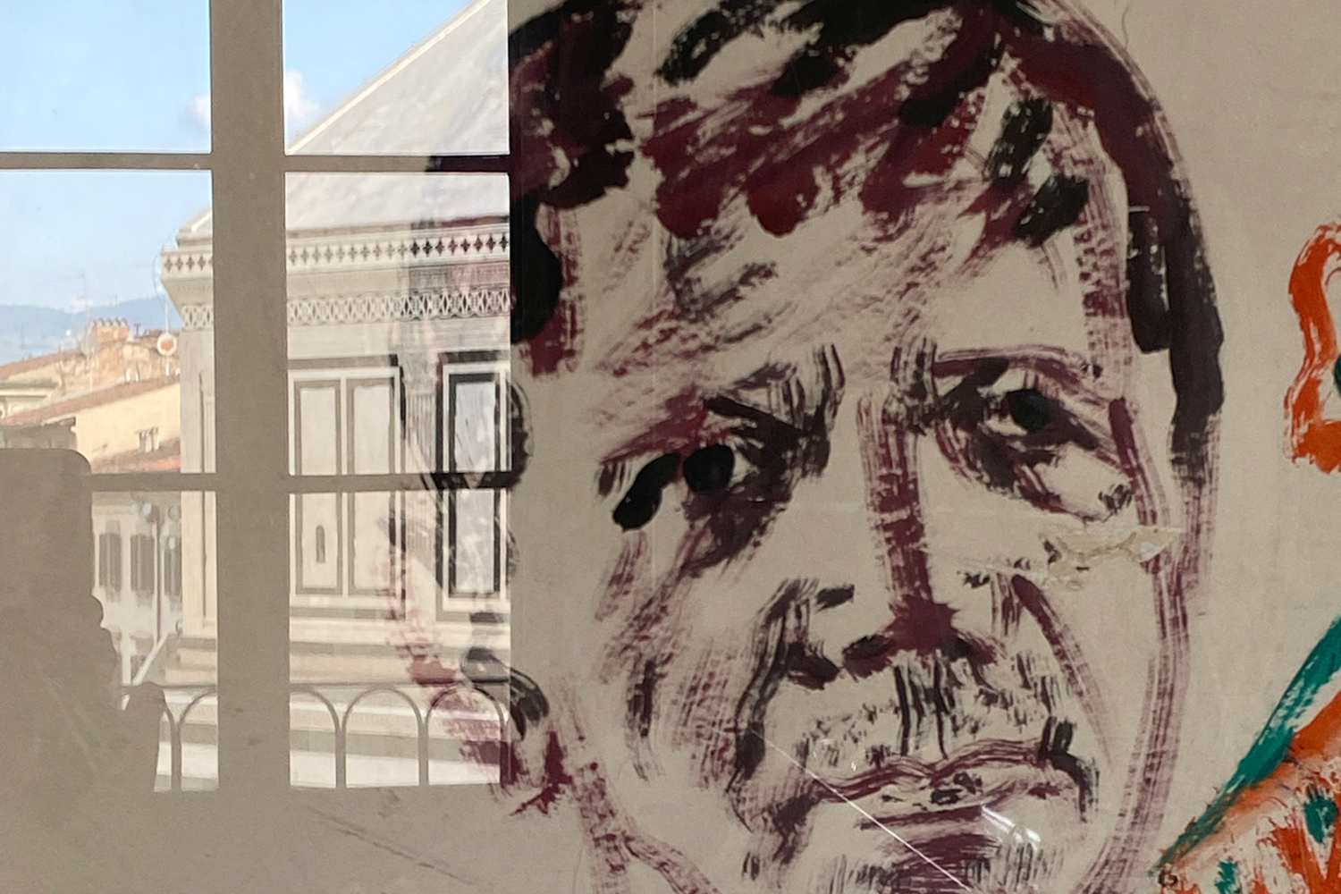 L’idea della mostra nasce quando la redazione della LdM Press si trasferisce, a fine primavera 2021, in quello che fu lo studio del pittore Silvio Loffredo per un periodo lunghissimo, dal 1953 al 1993. Posto all’ultimo piano del palazzo del Bigallo, le finestre e il terrazzino offrono vedute mozzafiato sul sottostante Battistero che divenne il soggetto principe del pittore parigino napoletano e fiorentino per scelta e, forse, condanna. Un luogo, dunque, di memoria, di inesauribili incanti e forti emozioni estetiche: ovvio pensare di invitarvi artisti visivi delle più diverse provenienze onde sollecitarne una “commissione-commistione” centrata sul sottostante miracolo architettonico, ma che fosse al contempo un originale omaggio al poliedrico artista che lì lavorò una vita.